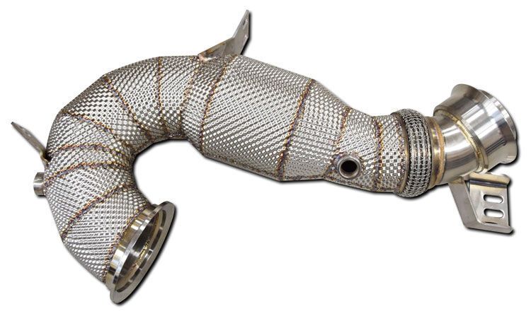 Artikelnummer: MBK63010SStainless steel exhaust downpipe with 200 cell racecat. Heat shield